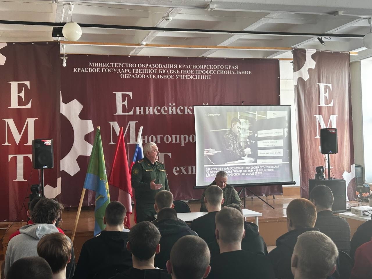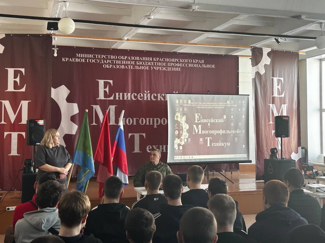 В рамках стратегического сотрудничества между техникумом и военным комиссариатом, 4 февраля 2026 года на базе КГБПОУ «Енисейский многопрофильный техникум», состоялась встреча с заместителем военного комиссара Красноярского края, полковником, Еговцевым Сергеем Владимировичем, военным комиссаром Енисейского муниципального округа, подполковником, Владимиром Павловичем Шиловым, начальником отделения военного комиссариата, Ольгой Александровной Сорокиной.