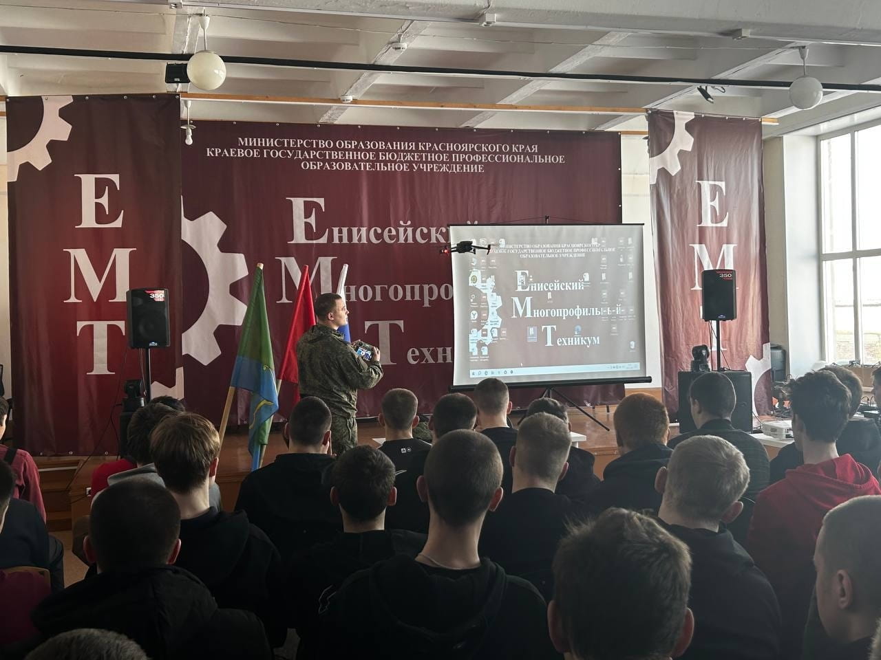 Выпускник КГБПОУ «Енисейский многопрофильный техникум» 2023 года, Ивченко Никита, являющийся на данный момент военнослужащим, наглядно показал обучающимся принцип работы беспилотного летательного аппарата (БПЛА) для формирования у ребят представления о реальных возможностях современной беспилотной авиации, увидели полный цикл запуска дрона, ведения съемки и передачи полученных данных в режиме реального времени.