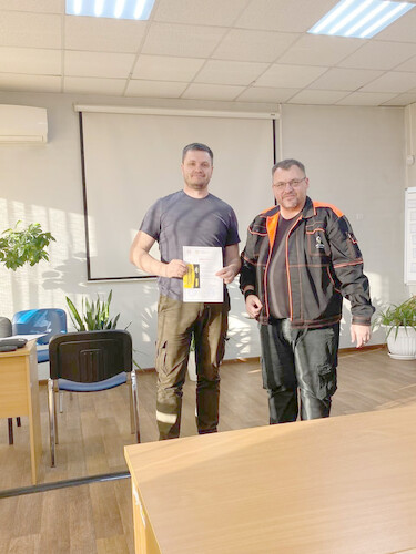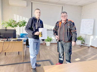 Обучающиеся группы 23.01.08 Слесарь по ремонту строительных машин Сазонов Юрий ( под руководством мастера производственного обучения Бугакова М.С.), Бадрин Данил ( под руководством мастера производственного обучения Пономарева С.М.), Бугаков Михаил Сергеевич ( мастер производственного обучения.