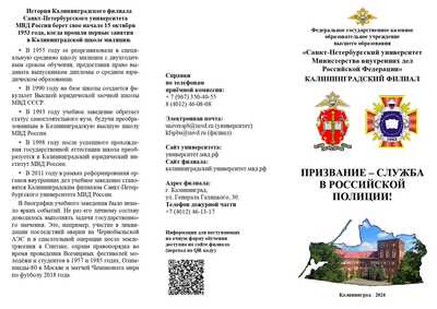» КАЛИНИНГРАДСКИЙ ФИЛИАЛ САНКТ-ПЕТЕРБУРГСКОГО УНИВЕРСИТЕТА МВД РОССИИ ПРИГЛАШАЕТ АБИТУРИЕНТОВ