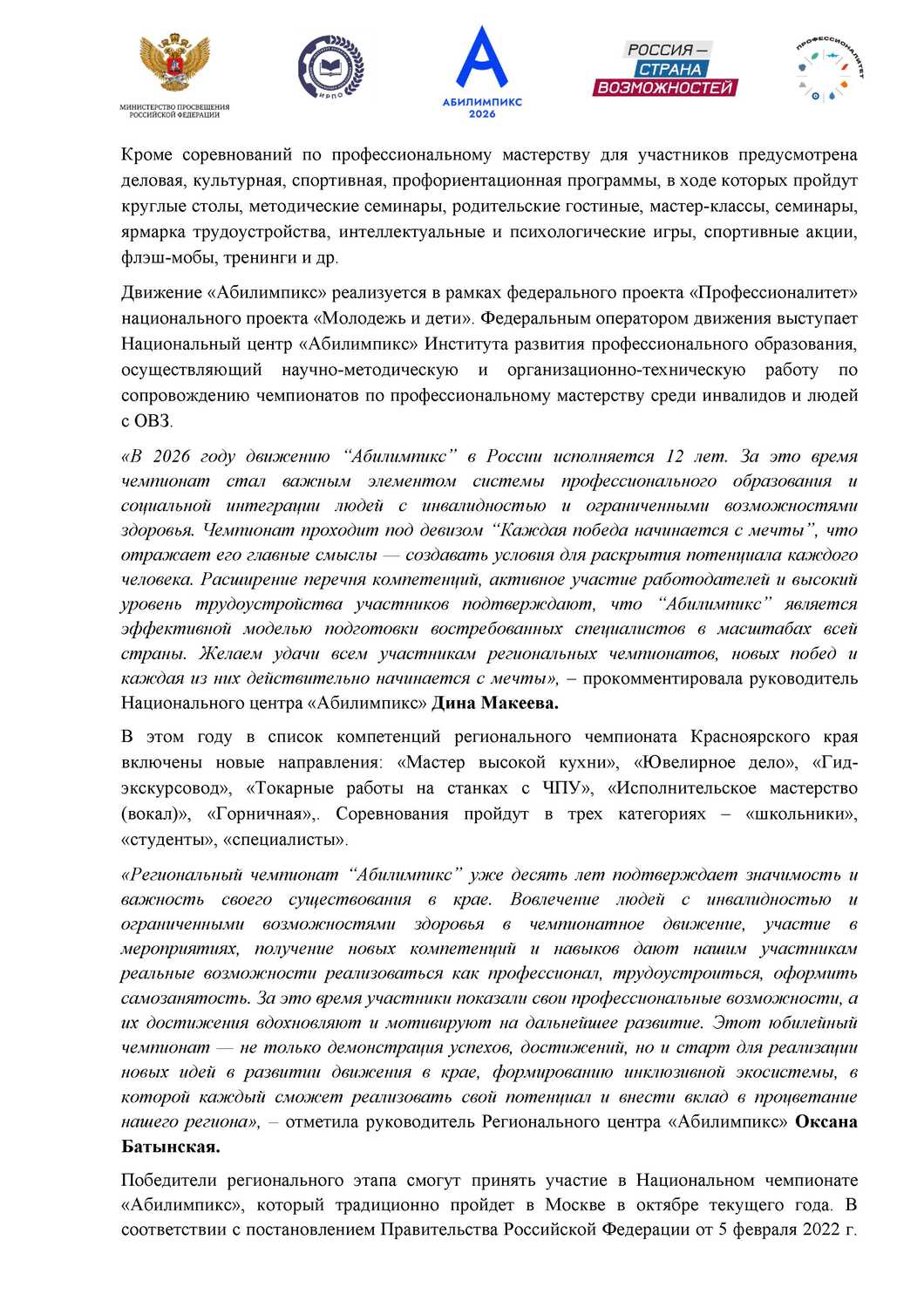 Пресс-релиз о старте X Регионального чемпионата «Абилимпикс» в Красноярском крае