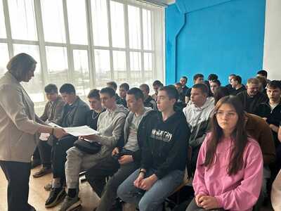 Сотрудник Пограничного управления рассказал обучающимся об условиях прохождения службы по контракту в пограничных войсках, её преимуществах, а также о социальном обеспечении военнослужащих, выходящих на пенсию по выслуге лет.