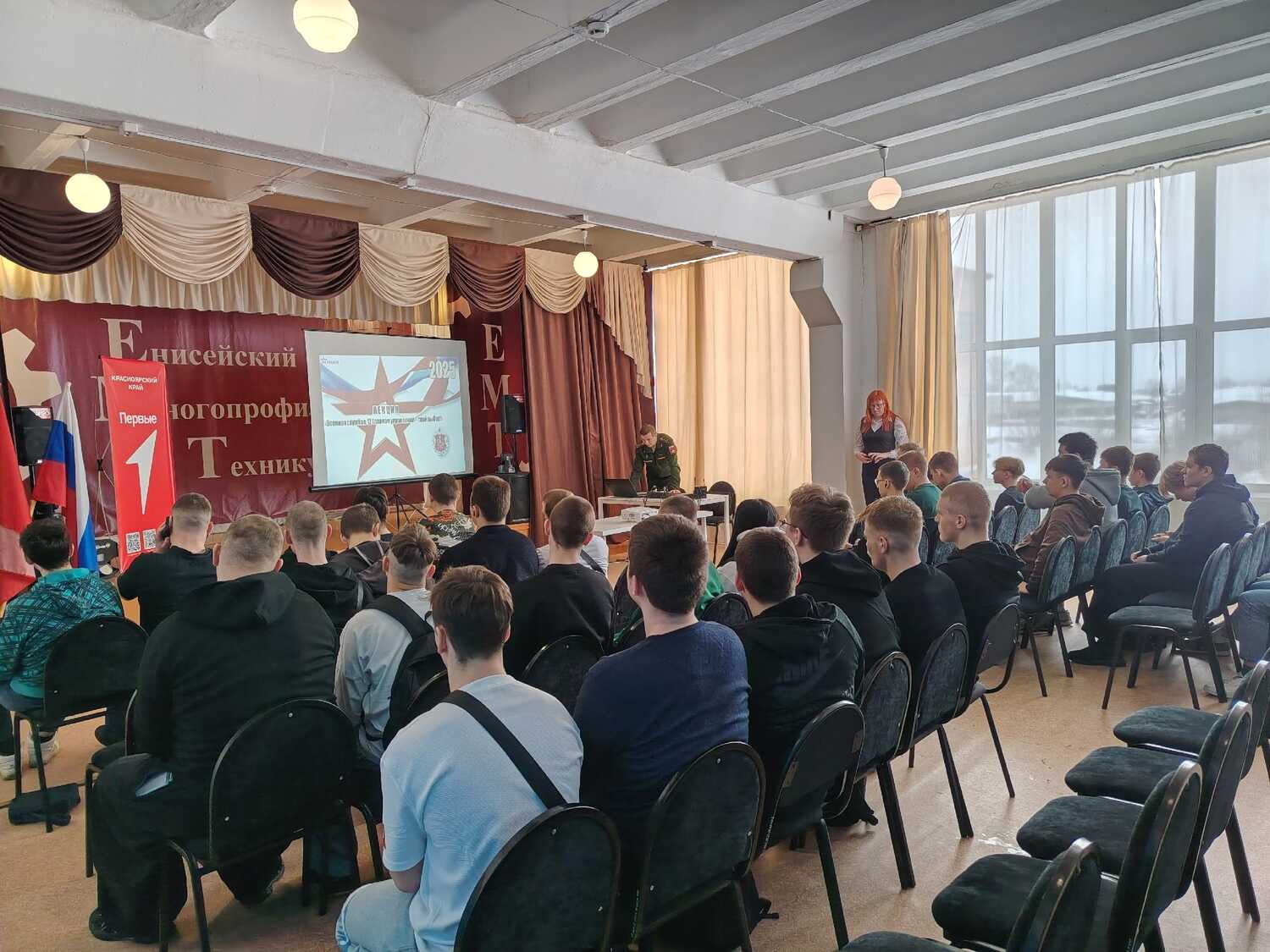 10 марта 2026 в актовом зале техникума прошла встреча обучающихся с представителем войсковой части 27155 г. Железногорска. Представитель войсковой части рассказал ребятам о преимуществах службы по контракту именно в этой войсковой части. При желании есть возможность служить в частях других регионов.