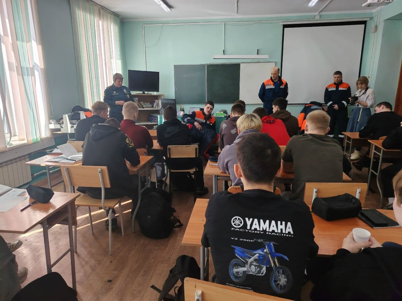 Вместе с инспекторами ГИМС ребята разобрали ситуации, которые могут случиться на воде, узнали, что нужно делать, если человек оказался в беде. Беседа основывалась на конкретных примерах и фактах из профессиональной деятельности сотрудников.