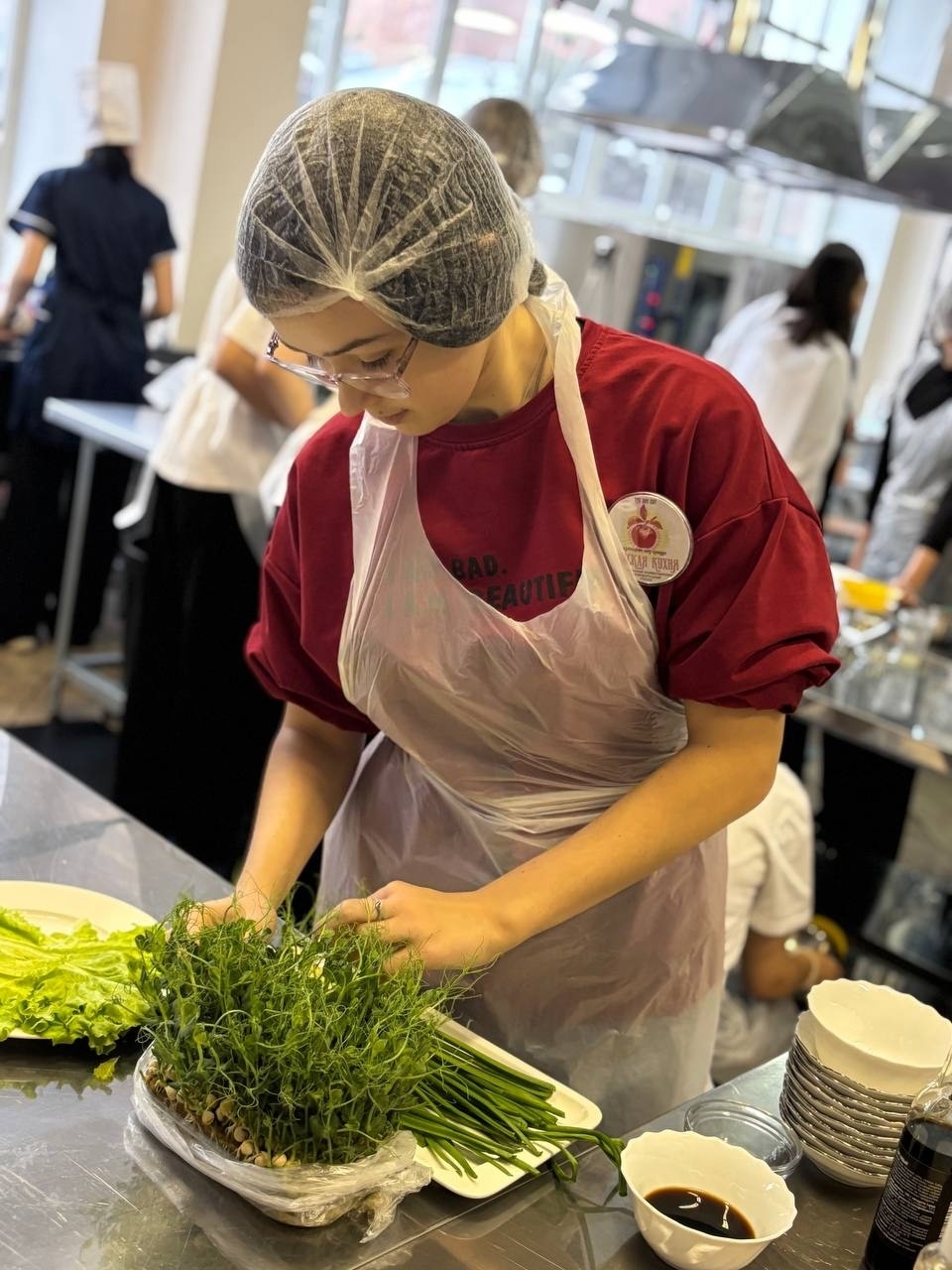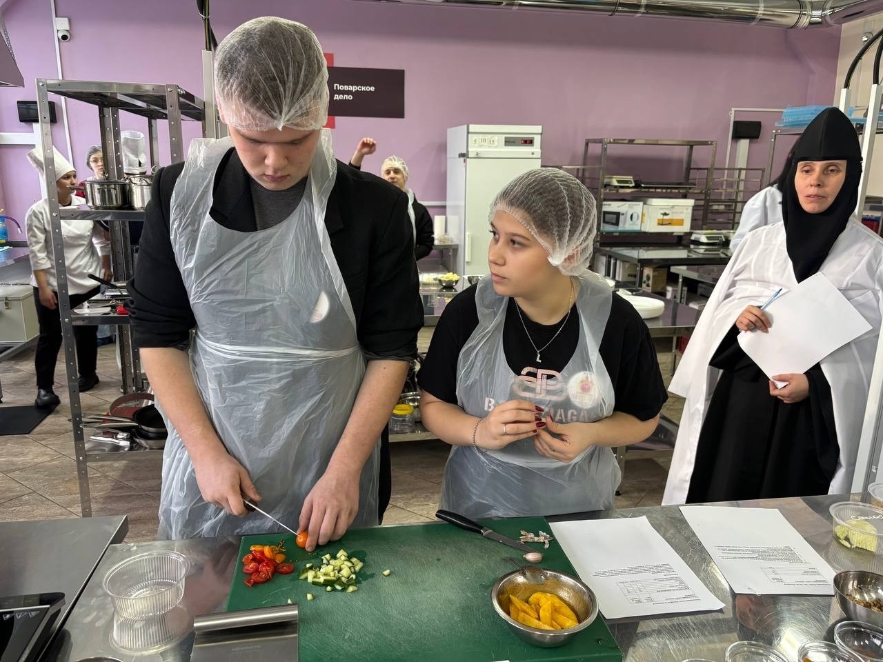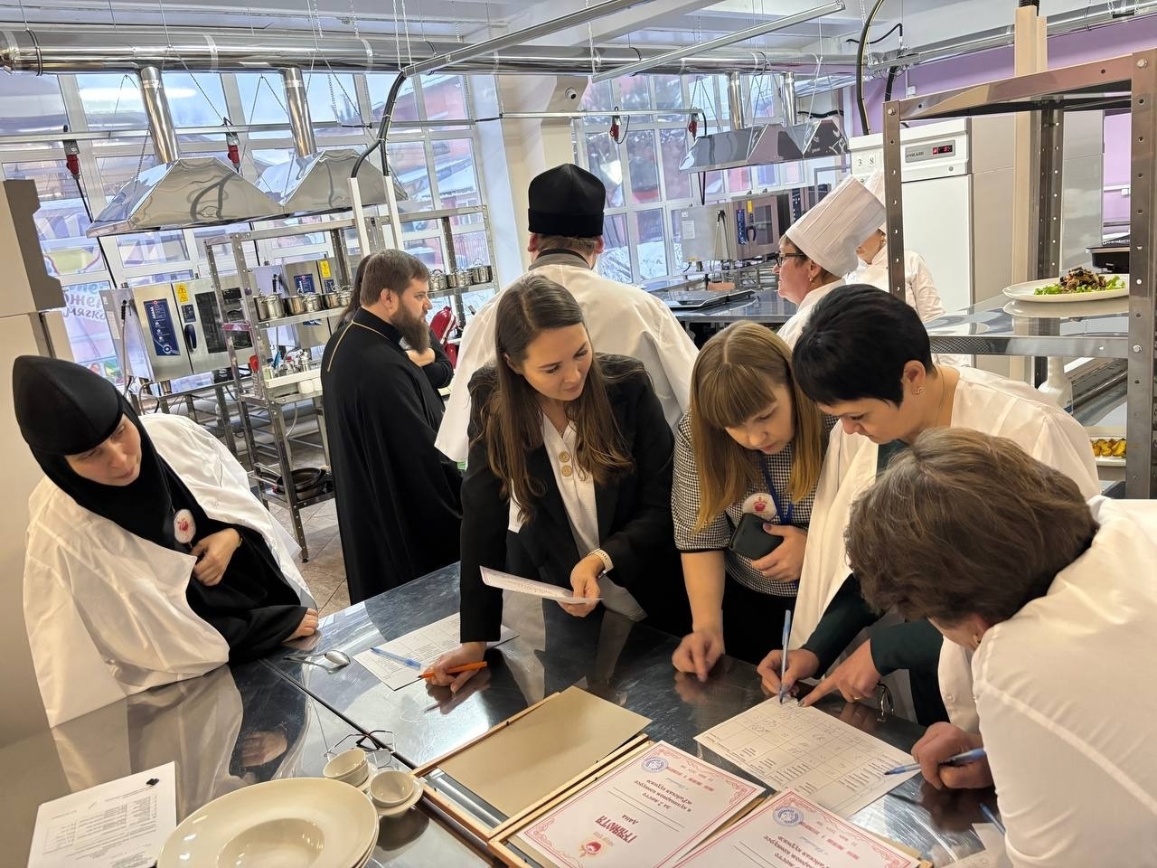 В практической части конкурса участникам предстояло приготовить блюда постной кухни: салат греческий с соевым соусом, картофель по-деревенски и чак-чак по-игуменски. Ребята проявили фантазию и мастерство, представив яркие и аппетитные блюда, которые жюри с удовольствием продегустировало.