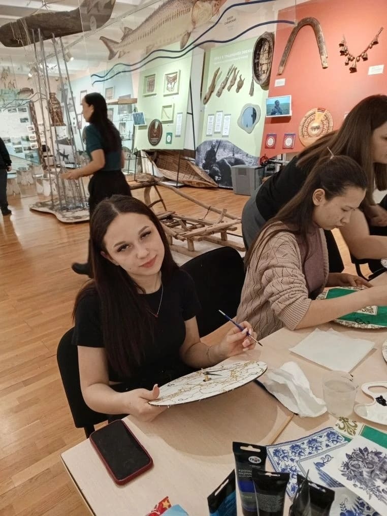 Обучающиеся 1 курса по Пушкинской карте посетили мастер-класс «Енисейские мотивы: роспись по дереву», подготовленный Енисейским музеем-заповедником.