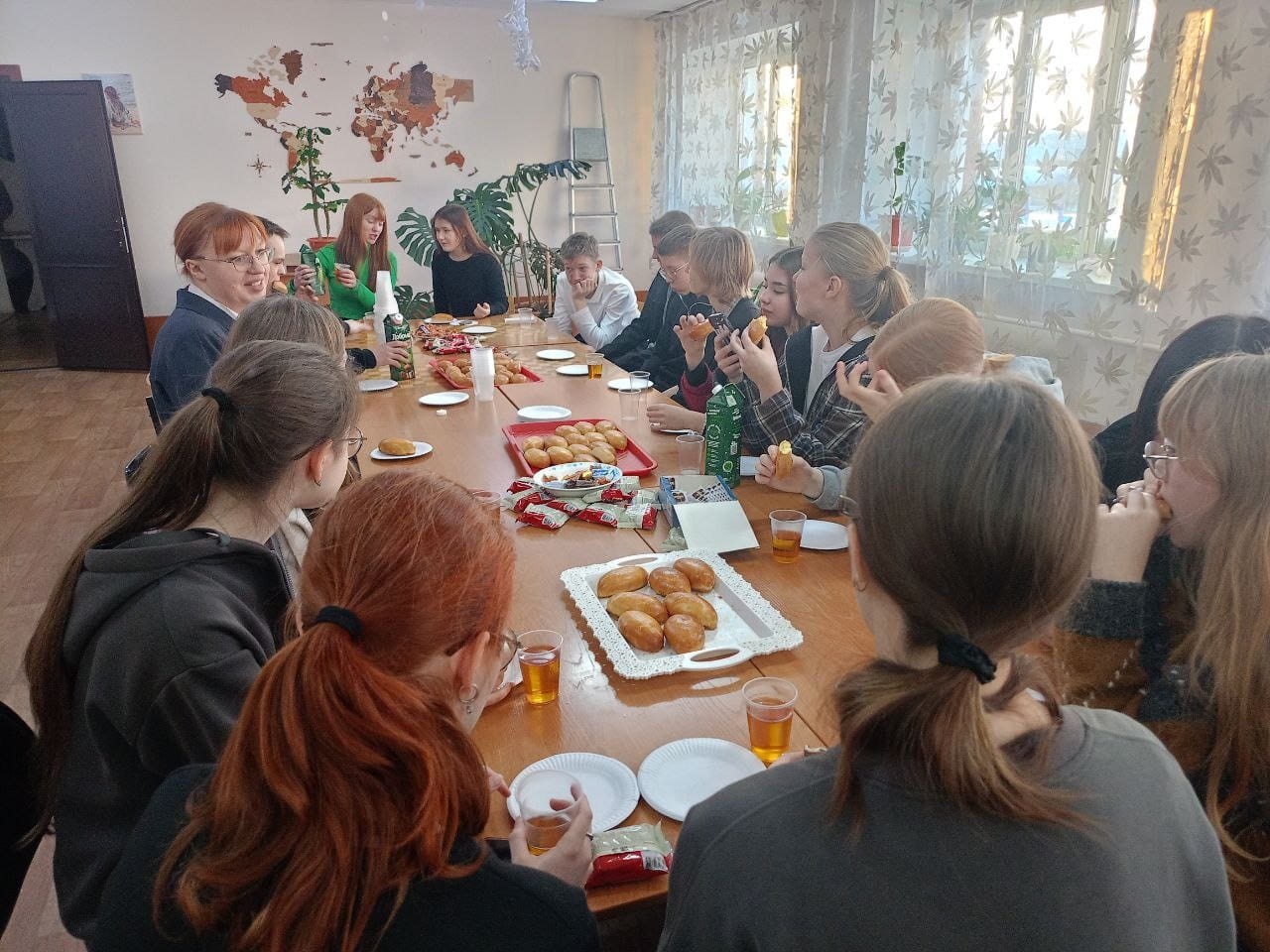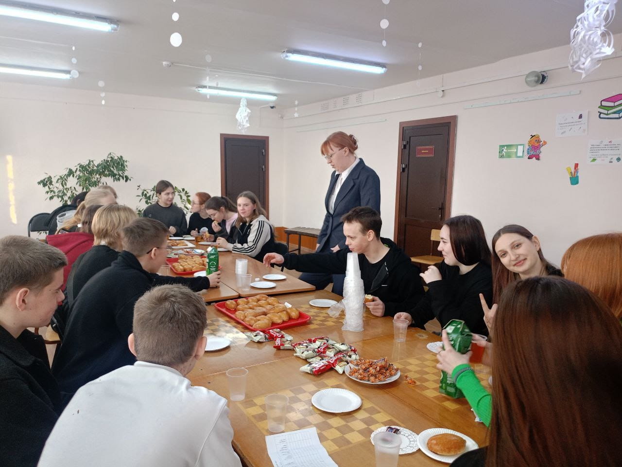 За чаем ребята познакомились друг с другом поближе, пообщались на разные темы. Но, конечно, особенно девятиклассников интересовало, чем отличается обучение в школе от обучения в техникуме. Мы в свою очередь узнали, что как минимум двое из наших гостей, в следующем учебном году планируют поступать в наш техникум. Что ж, будем будем рады!