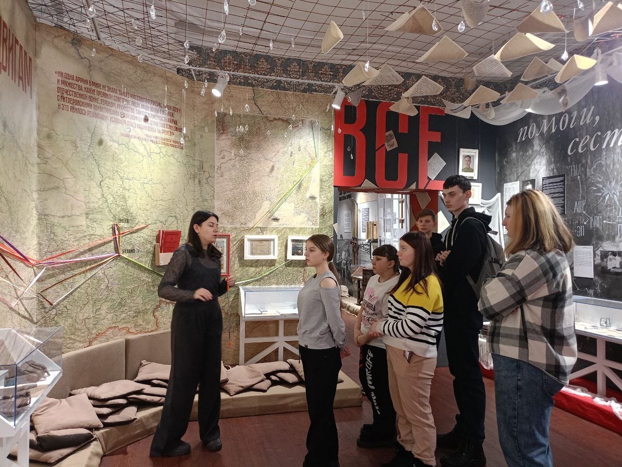 Выставка произвела огромное впечатление на наших обучающихся. Ребята с вниманием слушали рассказы экскурсовода о подвигах солдат на фронте и самоотверженности тружеников тыла.